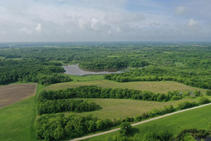 These nice 75 acres m/l have something that you dont see much around Harrison County. A 12-acre m/l lake that has good Bass and Crappie! Along with that you have buildings, CRP, and great hunting with quality Northwest MO Big Bucks. The turkey hunting will be good also. There was a manufactured home on the property at one time. The cement pad and tie downs are still there along with electric, water and sewer. The deck is still there with a concrete floor. There is a 30x30 garage with concrete floor and electric. The inside is pretty well enclosed in metal. There is another 20x30 building with a living room, bedroom, bathroom, and storm shelter. This could be attached to a new home. The other building is 12x40 with a small, enclosed area with electric for your hunting supplies or storage, the remainder is for your equipment to stay out of the weather.