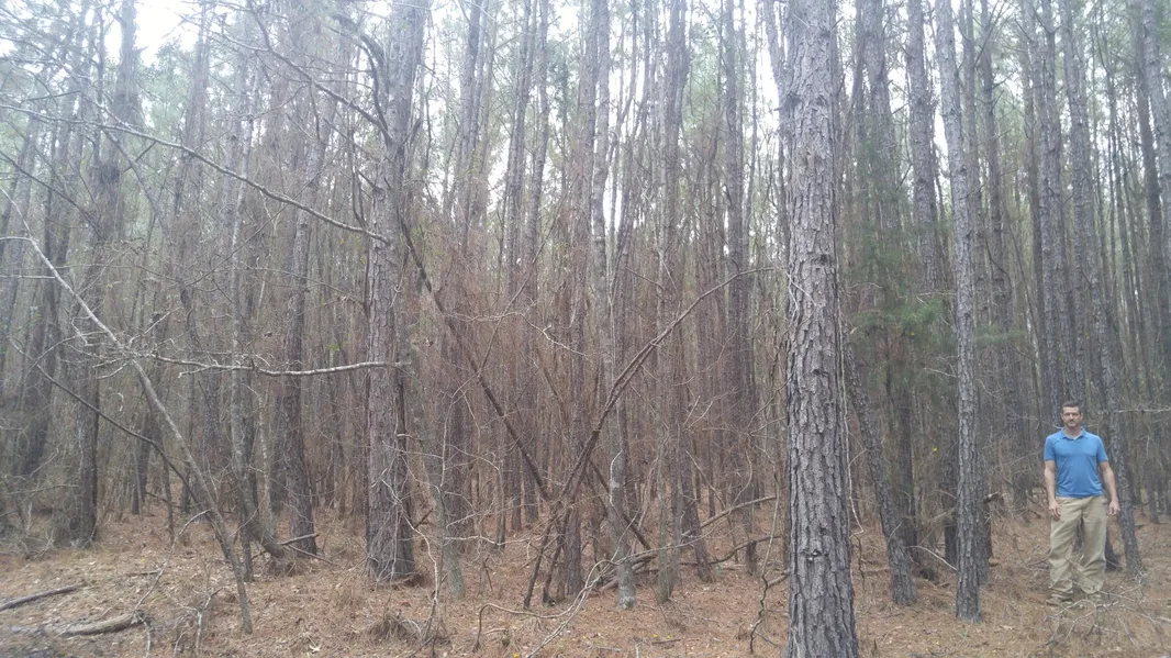 The property consists of primarily pine timber, well stocked, with some areas of hardwood. It has not been thinned. Age classes vary mildly, with most of it nearing merchantability or presently merchantable. A centrally located, well maintained interior road provides access, and the timber increases in size and density moving away from the road toward the perimeter. The boundaries are marked with pink flagging tape, with an old fence present as well. Deer hunting is quite productive in the area with high bag limits and deer populations. Minerals are not owned by the Seller and will not convey.