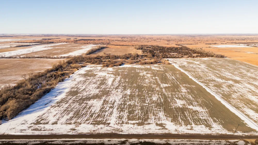 Tucked away from the road, this property provides ultimate seclusion and privacy, featuring rolling topography, tall native grasses, and a mix of thickets and timberall creating a rich and diverse habitat for wildlife. Whitetail deer, turkeys, and upland birds thrive here, making it an exceptional hunting property. This property has the potential for waterfowl habitat development in a coveted location. A dry pond and windmill/well offer a solid foundation for creating a waterfowl sanctuary. This property has it allhunting, recreation, and the possibility for future improvements. In addition to its recreational appeal, the land offers 53 acres of productive cropland, currently planted to winter wheat, generating $40/acre in annual rental income and provides a consistent food source for the wildlife.