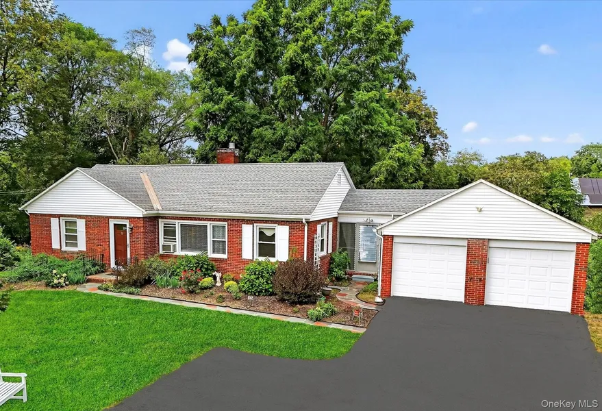 Welcome to this beautifully cared-for brick Ranch home, offering comfort, character, and plenty of space both inside and out. The inviting living room features a gas fireplace, wall-to-wall carpet with hardwood floors underneath, and a large picture window that fills the space with natural light while overlooking the garden and front yard. A charming dining room with built-in curio cabinets adds both elegance and functionality, perfect for family gatherings and entertaining. The primary bedroom is generously sized, complete with two large closets and plenty of room for oversized furniture. The updated kitchen (2008) boasts a cozy breakfast area, Corian countertops, a stylish subway tile backsplash, and an electric range with propane hookup available. The full bathroom, remodeled approximately 7 years ago, includes stylish ceramic tile, a tub/shower combination, and a heat light—perfect for those chilly mornings. From the kitchen, enjoy easy access to the breezeway that connects to the spacious deck, two-car garage, and both the front and back yards. The full unfinished basement offers abundant storage options, a generator hookup, and an updated 200-amp electric panel for peace of mind. Outdoors, the fenced backyard is not only perfect for children and pets but also features a peach tree, lush peonies, and a blackberry bush—a gardener’s delight!. This home combines comfort, convenience, and thoughtful updates, making it the perfect choice for its next owner!