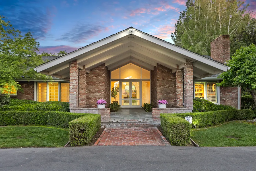 Built by Bill Crawford in 1964, this iconic Woodland home, situated on 1 acre of property, is hitting the market for the first time in 50 years. This beautiful single story home spans 4,250 sq. ft. of custom details and lavish upgrades. The living room boasts a wall of windows including 3 French doors to the patio, vaulted ceilings with tongue & groove detail, a massive open wood burning fireplace with seating surround and a wet bar, perfect for entertaining. The kitchen highlights include under cabinet and under island lighting, a large skylight, gorgeous refinished butcher block countertop, commercial grade gas cooktop and hood vent, built-in wall of open shelving, French doors to the patio, and butler’s pantry area with secondary sink. The primary suite offers several spacious closets, coffered ceilings, French doors to the backyard and an expansive marble bathroom with skylight, wall of windows, roll in shower, sauna, and double sinks. A large den with secondary fireplace, formal dining room, separate office, and three spacious bedrooms with en suites round out the interior rooms of this home. Top it off with multiple outdoor areas to enjoy including an impressive front entryway, two separate covered patios, a large pool with a wet bar/bathroom and a full-sized tennis court.