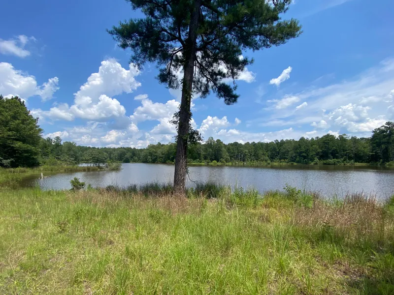 This is mainly a rolling tract of land, with some low land in the hardwood bottom areas...no swamps or wasteland are present anywhere on the tract which is a huge plus. There is a large network of roads and trails that give good access over the whole property. Some road work is needed in certain areas of the tract, mainly widening and shaping that could easily be done with a bulldozer. Coonhop Creek, a wet weather stream, is the northern boundary of the tract. Near the southern boundary and centrally located is a scenic 12 acre lake that offers good fishing and possibly duck hunting on the upper end. Constructing and permitting a lake of this size is a difficult task these days, sometimes near impossible, so having this in place is another huge plus in my mind. There are several food plots in place for deer hunting on a cool fall morning or setting up on strutting gobbler in the spring! Wildlife is plentiful here and there is no shortage of deer, turkey and hogs on this tract...I have no doubt that there are mature bucks and a healthy turkey population here! A small hunting cabin with power and well water(not sure of the condition) is also situated near the bank of the lake. There is a large, grassy open area here that would be an ideal spot for a new cabin or barndominium.