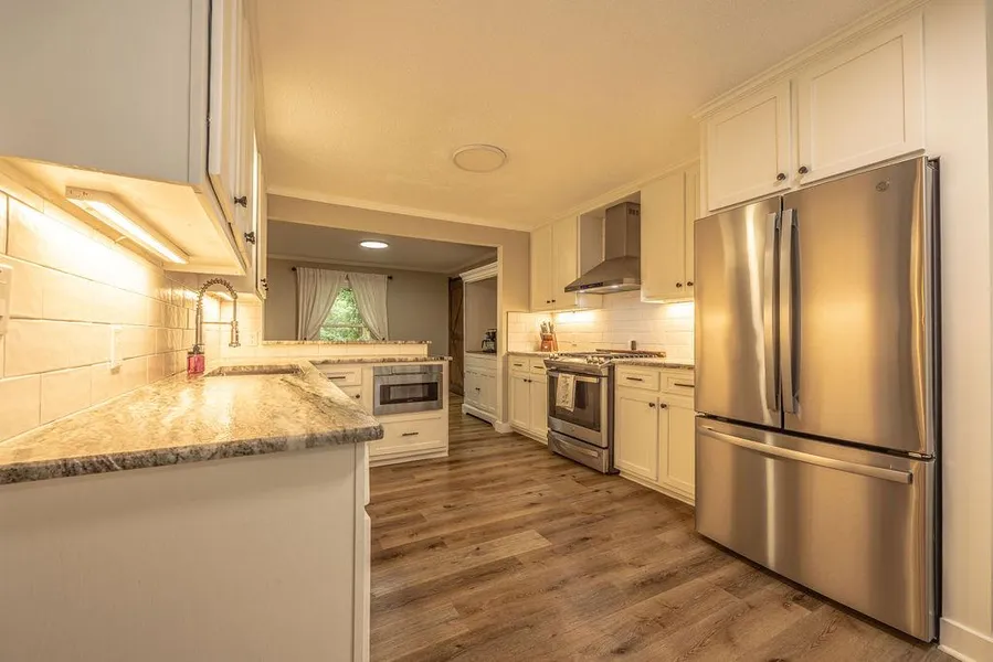 Nestled on a sprawling 3.2 acre lot this fully remodeled ranch style home seamlessly combines modern luxury with classic charm. Boasting 4 spacious bedrooms and 3 elegantly designed bathrooms, the residence features gleaming hardwood flooring throughout, and 2 fire places, enhancing it's warm and inviting ambiance. The heart of the home is a magnificent kitchen, a culinary haven equipped with top of the line stainless steel appliances, custom cabinetry, and a large pantry. Granite countertops and a stylish subway tile backsplash complete the sophisticated look, making this kitchen as functional as it is beautiful. The master en suite offers a private retreat, featuring a generously sized bedroom, a walk-in shower and it's own access to the generously sized back patio. This sanctuary provides a perfect space for relaxation and rejuvenation. Adding to the home's versatility is a spacious bonus room catering to various lifestyle needs, ideal for a home office, a gym, or a play/guest room. The expansive 3.2-acre property lined with majestic oaks offers ample space for outdoor activities, including gardening, and enjoying nature's tranquility. Whether hosting gatherings or simply savoring peaceful moments, this stunning home provides an idyllic setting for any lifestyle.