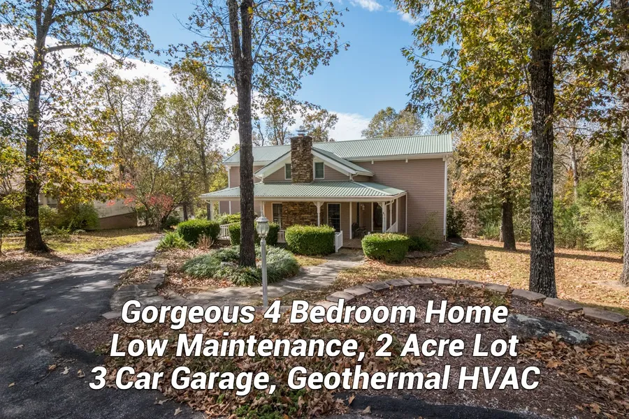 GORGEOUS LUXURY LIVING - 2,926 sf custom home nestled on 2 ac (m/l) wooded lot. Efficient, low maint, 4 BR, 2.5 BA metal roof, extra rooms, storage, 3 car gar. Lrg kitchen, custom solid walnut cabinets, slide-out shelves, pantry, nook. Private master suite w/full bath, large walk-in closet, laundry, sitting room w/view, private entrance to sunroom. Dining room, family room, office, sunroom. Geothermal HP, WH Gen, wood fireplace, many extras. Just out of town, near shopping, business, medical, lakes, rivers. This home is perked for a 3 bedroom home. This home is located in Mountain Home, Baxter County, Arkansas. #113022