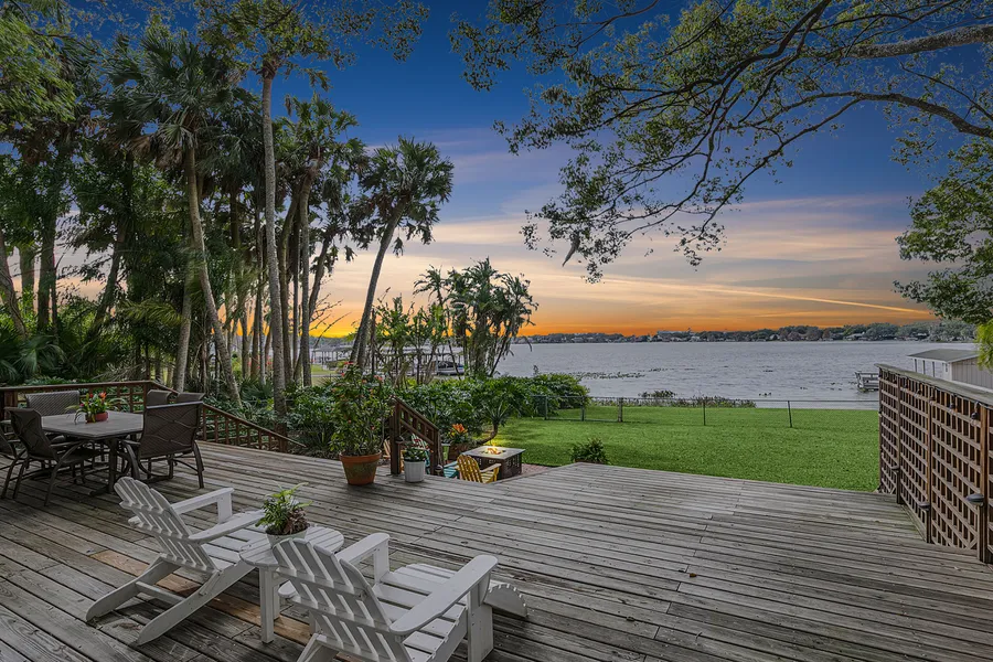 Welcome to your mid-century modern oasis in the heart of Dommerich Estates on Lake Minnehaha part of the Winter Park Chain of Lakes. This distinguished 4-bedroom, 4-bath, 3,780-square-foot, split-level home is a harmonious blend of timeless design and modern amenities, creating an atmosphere of sophistication and comfort. As you approach, the property welcomes you with mature landscaping featuring native live oaks and palms that provide both shade and a tropical ambiance. The carefully manicured grounds set the stage for the distinctive architectural features that define this residence. Step inside, and you'll discover an open floor plan that seamlessly connects the various living spaces. The 10-foot window in the living room frames an expansive lakefront view, inviting natural light to dance across the sleek mid-century modern lines. French doors open onto the covered patio, where an electronic roll-up screen enclosure allows you to enjoy the outdoors while maintaining a comfortable, bug-free environment. The split plan design ensures privacy and convenience, with a large primary suite, an office, and a second bedroom and bath on the upper level. The primary suite boasts tall ceilings and panoramic views of the lake, leading to a natural wood deck where you can unwind and appreciate the serene surroundings. The lower level offers two additional bedrooms and a bathroom, providing ample space for family and guests. The office and library space showcase custom-built solid wood bookcases with a closed cabinet beneath, creating a refined and functional workspace. The heart of the home, the spacious kitchen, is equipped with a pass-through to the great room, a generous eat-in breakfast space, and an under-sink reverse-osmosis filter for both the sink and fridge. Whether you're a culinary enthusiast or prefer casual dining, this kitchen is designed to meet your needs. The outdoor living spaces are just as impressive, with a large fenced-in backyard providing a private retreat. Cascading 1,100-square-foot deck overlooks Lake Minnehaha, offering spectacular, west-facing sunset views framed by towering palms. A single-slip dock with a boat house and a new lift motor completes the waterfront experience, offering a perfect spot to enjoy the Florida sunshine and lakefront lifestyle. This mid-century modern masterpiece in Maitland is not just a home, it's a lifestyle. Immerse yourself in the charm of Dommerich, where sophistication meets the tranquility of lakeside living. Welcome home to a residence where every detail has been thoughtfully curated to create a timeless and comfortable retreat. Located in Dommerich Estates with an easy, 3 blocks to Dommerich Elementary and Maitland Middle School, also zoned for Winter Park High School. Right down the street is boardwalk access to Maitland Community Park with a playground and tennis courts. Maitland is one of the greatest communities and offers amazing restaurants, easy access to expressway and roadways, downtown Maitland, Lake Lily Park, Enzian Theater, Sunday Farmers Market and lots more. Schedule your private tour today!