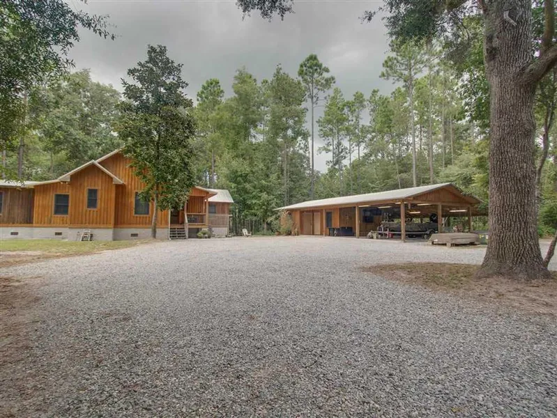 Custom Built Cabin on 6.57 Acres with mountain like elevations located inside The Great Satilla Preserve in Coastal Georgia. This 4 bedroom / 3 Bath home features custom woodwork both inside and out with a porch overlooking a 60'ft Bluff. A separate out building with an office, enclosed storage and open carport with ample storage complement the home nicely. This is truly an outdoor enthusiast's paradise with access to more acreage and more amenity than one could acquire with ten times the investment. The Great Satilla Preserve provides landowners a 2,100+/- Ac private preserve with 5.5 Miles of river frontage on the Satilla River and 18 Miles of Improved Timber Roads, Hiking, Riding and ATV trails to enjoy. There is a private Sporting Clays Course, Rifle & Pistol Range. The 2,100 +/- Acres has both rifle and bow hunting areas excellent Whitetail Deer, Wild Turkey, Hog and Tremendous Waterfowl Hunting opportunities. The property has everything one would expect with a luxury hunting resort including a 3,000 sqft Lodge, 3 Guest/Member cabins for overnight visits, Luxury Pool, Kids pool Area and Sand Beach, Fitness Cabin and Grilling, Oyster Roast and Fire-pit Entertainment Area.