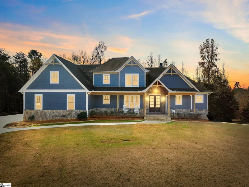 Your active family can have it all within the walls of 751 Tugaloo Road. Sitting on just under 5 acres with a luxury pool and home movie theatre, this 6 bedroom, 3 full bath home has everything you need to live, work, play, and entertain all year round. Nestled in Travelers Rest, this residence offers the perfect blend of curb appeal and functionality with plenty of privacy. With only a few neighbors surrounding the lake, you don't have to worry about being too close for comfort. Upon arrival, this blue gem invites you in with the charm of custom stonework and arched gables. Enjoy a quiet moment with a cup of coffee on the front porch or play a game of pickup basketball in the driveway. The three car garage holds plenty of space for your vehicles, tools, or outdoor goods. Stepping inside you'll love the warm tones of hardwood flooring that continue throughout the main level and recessed lighting in the living area. The living room and kitchen are open concept, making it easy to have family and friends over to watch the game or get cozy around the beautiful, stone-adorned gas fireplace. Built-in shelves and cabinet space can be used to hide video and board games while displaying family photos and heirlooms above. Open the glass doors from the living room out onto the screened porch complete with standing fireplace and ceiling fans to eat outside with a great view of the pool. One step further takes you to the outdoor deck where you can light up the grill for summer barbecues. The modern kitchen is a dream with stainless steel appliances, sleek countertops and cabinets, spacious island with an extra sink for meal prep and additional seating, and breakfast nook for doing homework or planning the weekend's activities. The formal dining room sits right off the kitchen with plenty of room for family and dinner guests. Settle into the primary bedroom oasis with wall-to-wall windows that allow tons of natural light. The attached bathroom is a masterpiece, featuring two vanities, marbleized countertops, a generously sized walk-in shower, luxurious soaking tub, and ample walk-in closet space. Experience the ease of doing laundry all in one place with a private laundry room that provides cabinet space for storage, sink for extra stain removing or soaking, and counter space to fold. Upstairs holds three secondary bedrooms and a sitting area for space to play, craft, or relax. The upstairs bathroom features two sinks and extensive storage space, making it easy to get everyone ready and keeping toiletries out of sight. Working from home? The lower level of the home is a haven for work and play. Three versatile rooms give you tons of flexibility for remote office space, bedrooms, playrooms, or a home gym. With a living room complete with gas fireplace, home bar with a sink for entertaining, and private bathroom, the lower level could be used as an in-law suite or private area for guests. The whole family will adore the home theatre, fitted with a large projector and raised floors so everyone can see their favorite movie on the big screen. Tucked away in the lower level, grab the popcorn and make movie nights at home a family tradition! Take the fun outside to the fenced pool area complete with a diving board for endless hours of summer fun. A patio beneath the deck makes for the perfect snack area and retreat to the shade. Close by grocery stores, shopping, fishing, horse riding, and 11 minutes from everything downtown Travelers Rest has to offer, you'll never run out of things to do! Experience all this home has to offer with a private showing to see if it's the right fit for you and your family. Schedule a showing today!