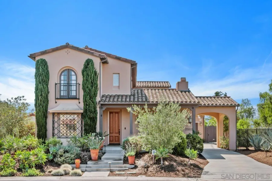 Located in the prestigious community of Santaluz, this Spanish Bungalow offers exceptional privacy at the end of a cul-de-sac street with no direct neighbor on one side and open unobstructed views. With desirable southwest exposure, the home is filled with abundant natural light. The floor plan features a formal living and dining room with a custom wine closet, along with a gourmet kitchen that opens to the family room for seamless entertaining. A full bedroom and bath on the main level provide flexibility for guests or multigenerational living. Elegant details include refinished hardwood floors, crown molding, plantation shutters, arched doorways, and custom window treatments. Enjoy three fireplaces throughout-in the living room, family room, and outdoor patio. The backyard is ideal for both relaxation and entertaining, complemented by a spacious side courtyard with room to gather, play, or park. Additional highlights include fully owned solar and location within the award-winning Poway Unified School District. Santaluz offers a resort-style lifestyle with world-class golf, miles of walking, biking, and hiking trails, guard-gated entry, parks, clubhouse, spa, restaurants, and more. (Club membership is available separately through Santaluz.)