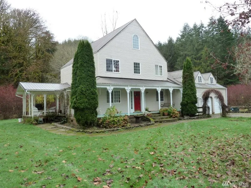 Quiet country living on the banks of Lucas Creek. 2 story country styled saltbox with great covered porch to enjoy the day. Rustic charm but home needs attention. Bring your skills. Garden area with quaint potting shed. Private pond. Older hip roof barn with hay storage. 4 horse stalls. Office/retreat area. Riding arena, approx 60'x90'. Mixed pasture and trees. Nice stand of Alder across creek. This property has it's challenges but lots of value for the $. Private setting back up to timber lands.