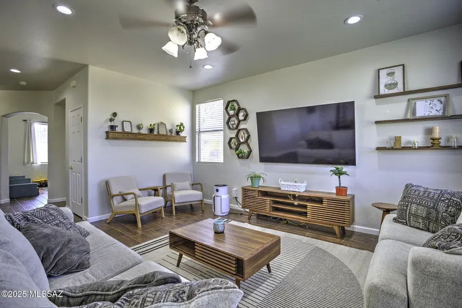 Hello Mountain View's!! Welcome to this charming 3-bedroom home with a versatile loft and den, complemented by 2.5 bathrooms and a stylishly updated kitchen. The bright floor plan is designed for both relaxed living and entertaining guests. Step outside to your private backyard retreat featuring a sparkling pool, low-maintenance turf, a cozy gazebo, and stunning mountain views. Located in the sought-after 85757 area and just steps from a neighborhood park, this home combines comfort, elegance, and outdoor living at its best.