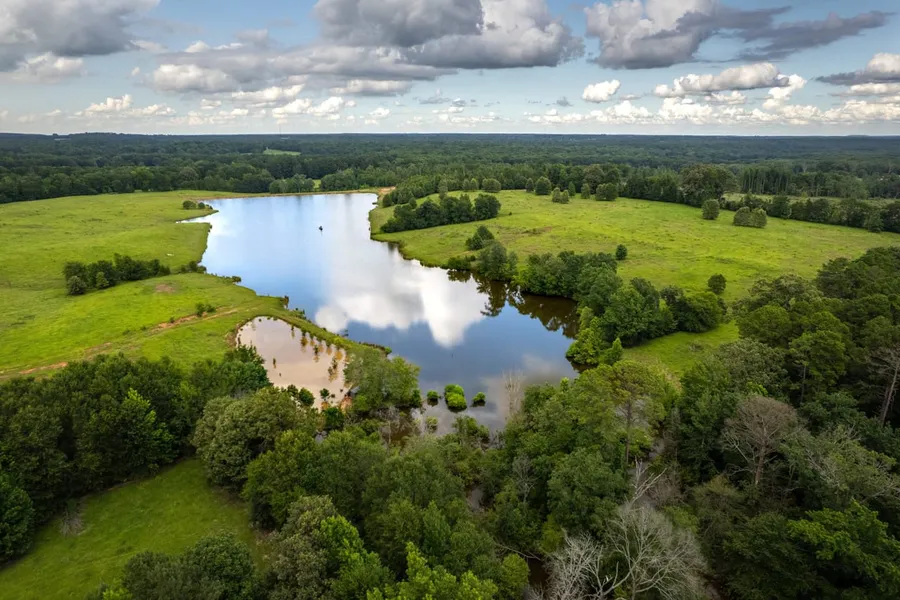 The 13-acre lake, located near the home, is equally scenic and serves as a true bass factory. Its abundant habitat supports baitfish and fingerlings, making it highly productive. This lake also contains a 0.25 acre island in its upper portion, which provides wildlife habitat, nesting areas for waterfowl, and a fun destination for kids to explore, camp, and enjoy the outdoors. On the east side of the lake lies a 2 acre wetland specifically designed for waterfowl, complete with wood duck nesting boxes that highlight the property’s focus on wildlife stewardship.
