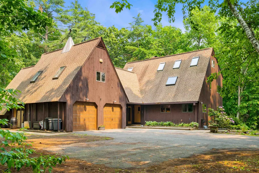 Welcome to this stunning contemporary home nestled in highly desirable southeast Hollis. Boasting an impressive blend of modern architecture and thoughtful design, this residence offers the perfect balance of comfort and style. You are welcomed into the home through an impressive sunroom with views of the deck and yard, the perfect place to relax when you get home! The kitchen features tons of storage, newer appliances, a peninsula with seating for 3 and large floor-to-ceiling windows in the dining area. The floor-to-ceiling windows continue in the living room illuminating the beautiful wide pine floors, and fireplace. There is a large laundry room with tons of storage and a 1/2 bath on this level. Upstairs you will find newly updated baths and 3 beds each with vaulted ceilings and private loft spaces and new flooring. The primary suite includes a walk-in closet with built-ins and an additional large closet. Over the garage is a large, finished space with its own heat/AC and 2 storage areas. The lower level includes a bedroom with 3/4 bath, and a tiled family room (which has been rough plumbed for a future kitchenette) again with floor-to-ceiling windows and fireplace. The utility room includes lots of storage for your tools. The garage is massively deep with 2 large bays with additional storage spaces behind. All located on a lovely country road with easy access to Nashua and highways.