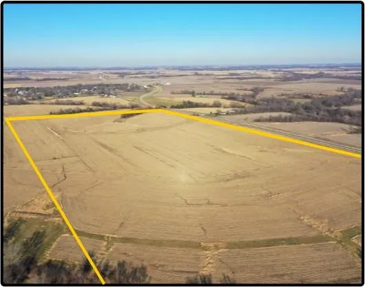 76.88 acres, m/l, located 3 miles southwest of Brighton, Iowa on the west side of Fir Ave.