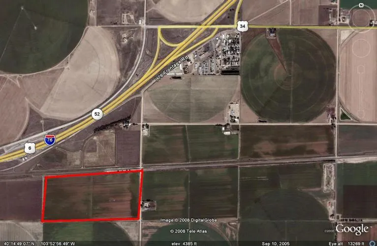West of Fort Morgan Colorado, near I-76 interchange is this 76.93 acres zoned Heavy Industrial. Adjoins Burlington Northern Rail line. Zoning could be changed to fit your needs. Electric is at the property line and domestic water (city type)is nearby. Within a irrigation area for delivery of irrigation water (no water rights are owned at this time). Bring us your business needs, see if we can fit. Near Fort Morgan Shopping, Hospitals, Restaurants, material and hardware suppliers.