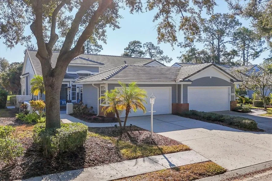This move-in ready, updated, and impeccably maintained 2-bedroom, 2-bath Hibiscus model villa—with a den/office, 2-car garage, and a serene view of the 14th tee—is located in the award-winning University Park Country Club.