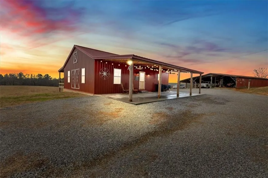 This charming 2-bedroom, 1-bath home built in 2022 offers the perfect setting for self-sufficient living on 3.64 picturesque acres with pasture and lake views, all nestled within a lovingly tended family farm that has been cared for for generations. Inside, you ll enjoy 1,280 square feet of open-concept living space featuring a spacious kitchen with stainless steel appliances and large pantry, central heating and air, while a maintenance-free exterior and roof keep upkeep simple. The unfinished basement, accessible both internally and externally, is built as a sturdy in-ground storm shelter with 10-inch thick concrete walls reinforced with steel rebar and equipped with shelving for your supplies. Outdoors, you can relax on the expansive 16x40 back porch or the equally generous 16x40 covered front patio, and the attic with its pre-installed plywood flooring is perfect for extra storage or future expansion. Additionally, the property includes a 50x70 barn with water, power, and a 100-amp service box ideal for hobbies or housing animals, plus a private 300-foot drilled well installed last year, ensuring a reliable water supply. The entire property is completely fenced in with gated access for added security and privacy. Conveniently located just minutes off Hwy 27 North in Buchanan with easy access to I-20, this home offers a perfect blend of serene country living and modern conveniences, making it an ideal spot for a hobby farm where you can bring your goats, chickens, or any animals you ve been dreaming of all set against breathtaking views that you simply must see before someone else does.