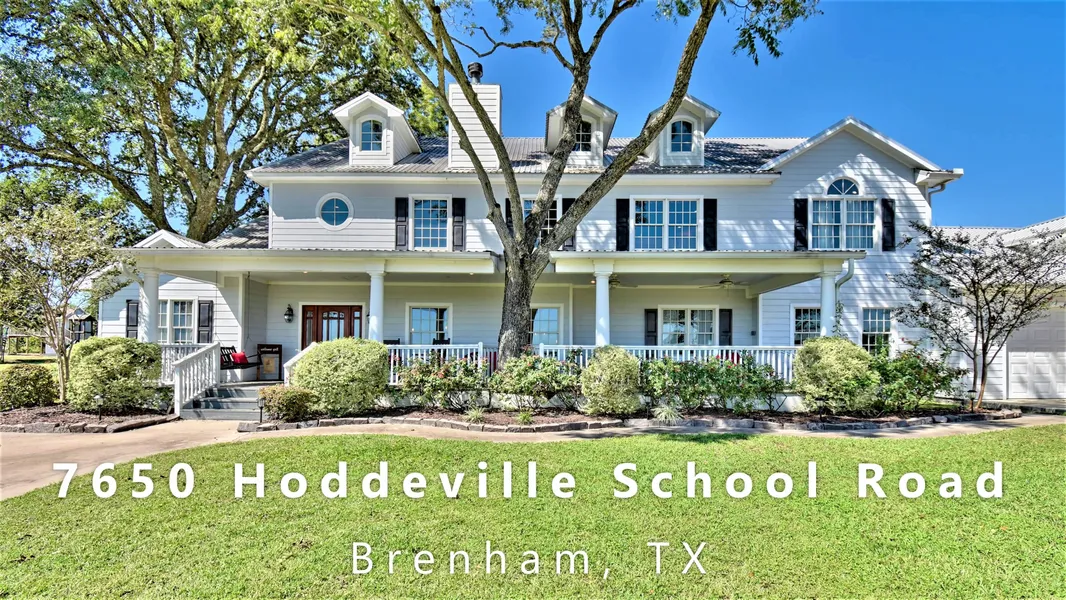 Gorgeous custom farmhouse sitting on hill toward the back of the property in one of Washington Countys most scenic areas with PANORAMIC VIEWS. WCAD shows 6452 square feet living area with 3-stories, 6 bedrooms, 5.5 baths, multiple entertaining areas, 3 car attached garage, POOL with fountains, extensive outdoor entertaining area and porches, SHOP building, PLAYGROUND, Storage building, Equipment Barn, TREES, fenced with electric gated entrance and currently AG Exempt for hay production.