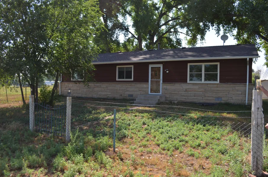 3.86 acres. 1479 sf ranch 1 story house. 3-bedrooms, 2-baths, living room, dining room, kitchen, and laundry/utility room. Kitchen appliances: gas range, microwave oven, and dishwasher. A 3/4 bath is accessible from the main bedroom and laundry room. Full bath is located off the hallway. House is heated with hot water baseboards. Back of the house faces CR 24. A 2400 sf shop/garage is partially heated by a wood burning stove and propane heater. Water is provided by Central Weld County Water Conservancy District. There is a well with permit # 100641-A. Purchase includes 2 shares of capital stock in The New Coal Ridge Ditch Company & Husqvarna riding lawnmower.