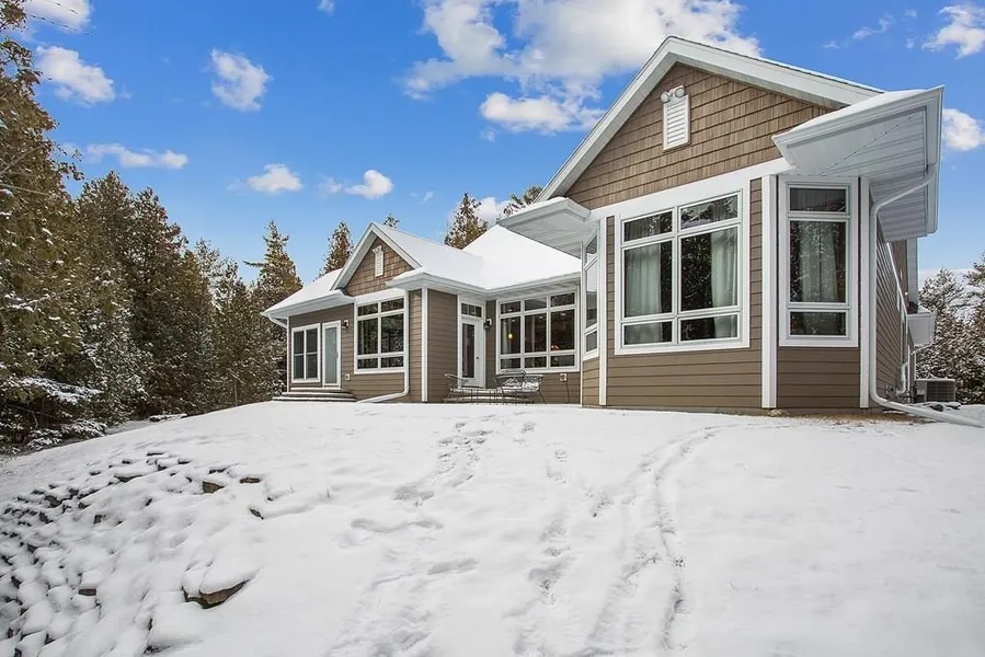 This stunning home is carefully tucked in the woods with easy walking access to downtown as you stroll along the Lake. A former Showcase home featuring an open concept floor plan, perfect for entertaining -- high ceilings with detail, fireplace, patio, three-season porch, gorgeous kitchen with walk-in pantry, and hardwood floors complete your main living space. The luxury continues in the master suite featuring a private en suite bath with custom walk-in tile shower. Third bedroom can be used as a guest room or a lovely home office. Upstairs awaits you with a completely finished bonus room offering an expansive amount of space for hobbies or add'l guests. The outside features lovely stone detail including fire pit, patio and much more!