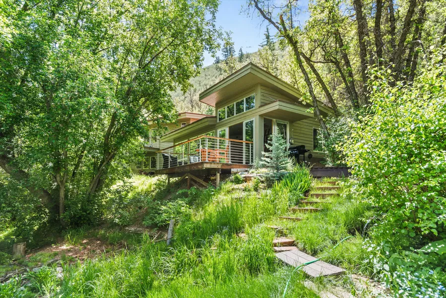 Welcome to ''Innisfree'' (named after the Yeats poem), ''Where peace comes dropping slow.'' 768 Kings Lake Road, on the Frying Pan River and adjacent to the White River National Forest. This special 5-acre property is tucked into the hillside and boasts stunning views, wildlife, and complete privacy. An angler's dream retreat with private fishing on Gold Medal waters and 190ft of river frontage. Built in 2013 and extended in 2020, the clean, modern lines and innovative design nestle perfectly into the surrounding woods like a treehouse. The contemporary main residence includes two bedrooms, and there is an additional seasonal room (and outdoor bathroom) housed in a yurt tucked into the mountainside above. The Secret Creek Yurt is ideal for overflow guests or the perfect hideout for immersing oneself in nature and sleeping under the stars. Other unique features include a work shed or outdoor bar, a private deck built with tree trunks from the land for yoga, reading, sketching or as a kids playroom, and plenty of outdoor spaces to explore including a wilderness ''secret garden'' for the young ones. This property is perfect for anglers or those seeking peace and tranquility in Nature.