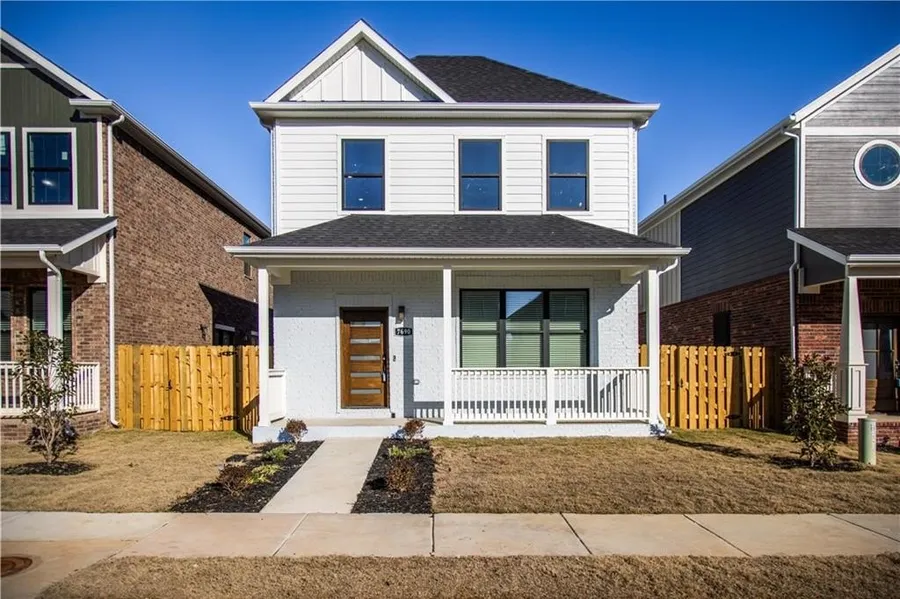 Welcome to this brand-new 4-bedroom, 3.5-bath modern farmhouse, thoughtfully crafted with style and functionality in mind. The open-concept living, kitchen, and dining spaces feature soaring ceilings and large windows that flood the home with natural light, creating an airy and inviting ambiance. The main-level primary suite offers convenience and privacy, while the upstairs bonus loft provides versatile space for a home office, playroom, or additional living area. Designed for modern living, this home includes laundry hook-ups on both levels to streamline daily tasks. Step outside to enjoy the covered front porch, a private fenced side yard, and the added benefit of a community park and playground nearby the home. The 2-car garage offers ample storage for all your needs. Located near HWY 112 and HWY 412, this home offers easy access to everything Northwest Arkansas has to offer, from schools and shopping to dining and recreation.