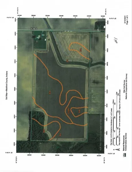 This tract is 78.857 acres with approximately 75.55 tillable acres Dunkirk, IN. Level farm ground with an 18 main tile plus some systematic tile providing good drainage. Soil types: Bono Silty Clay (Bo), Blount-Glynwood (BlA) & Pewamo Silt Clay (Pm). Property pros: Application of chicken manure for the past 9 years. No interior fences. Wind Power Contract, with solar power promised after wind power is in place. Farm in on top of the Trenton Oil field, mineral rights convey. Farm could be purchased in conjunction with 4 other farms. Soil Maps, GIS maps & Tile Maps available. Purchase now for 2021 crop rights. Located 12 miles west of Portland.