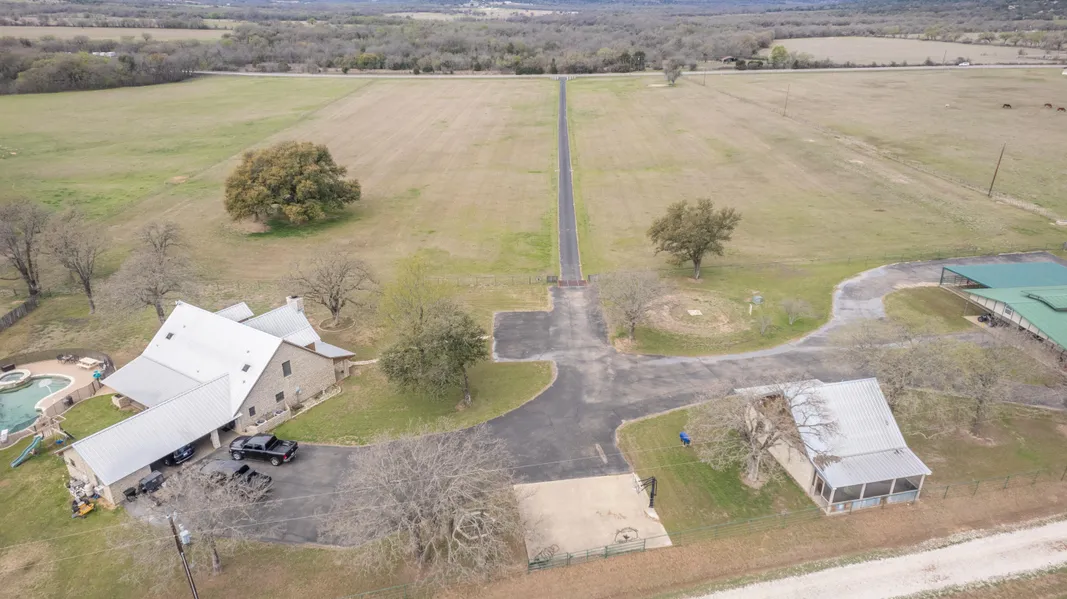 77 acre ranch, belonging to 4 time World Champion Tuff Hedeman, features a newly remodeled 3464 sqft rock home, 4 bedrooms 4 baths, open concept with rock fireplace up to the bead board vaulted ceiling, wood flooring throughout. The kitchen has an eat in bar with stone accents, leathered granite countertops, double ovens and a copper farmhouse sink. A spacious master bedroom, master bath has decorative metal ceiling and a custom shower. Upstairs has an open loft type flex space for a game room or living area. Private office opposite the porte cochere. Outside this beautiful home is an inground diving pool with a hot tub. The 2 bedroom 1.5 bath western heritage guest house has rich wood paneling chair rail, metal ceiling, stained concrete floors. Outdoor arena with lights and sprinklers. 6 stalls with open runs. Three barns: 3100 sft Sweetwater horse barn with 5 stalls, tack room and covered runs and two 5000 gallon water tanks. 3600 sft haybarn, and 1000 sft equipment barn. Cross fenced pastures with slick wire. Contact Craig Chapman (817) 500-3089