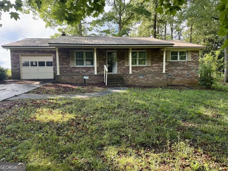 Charming All-Brick Home on Over an Acre Near Downtown Hartwell! Featuring a classic covered front porch, this home welcomes you into a warm and functional layout. Step inside to find a cozy living room that flows into a large dining area with an adjoining sitting space, perfect for relaxing or setting up a wood-burning stove in the designated nook. The kitchen is conveniently located just off the dining room, offering a functional layout with great potential. The owner's suite includes a generous walk-in closet and a private bathroom, while two additional bedrooms share a second full bath. A one-car garage and a separate laundry room. Enjoy the outdoors from the expansive back deck, with plenty of room for gatherings or quiet evenings under the stars. This solid home has great bones and just needs a little TLC to shine. Whether you're looking for a first home, an investment opportunity, or a peaceful place close to town, this property is full of possibilities. Schedule your showing today! Sold As-Is.