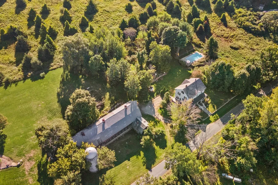 This is what dreams are made of: Introducing Stowe Farm c1874. Once a dairy farm, this 3 acre property abuts 400+ acres of conservation and consists of a gorgeous restored/updated antique home; a truly incredible 120 ft barn with silo and an inground pool! 2,400+ sq ft home with 9ft ceilings provides modern comfort yet many period features and charm remain. Step into the oversized foyer with beautiful staircase with angels carved into the newel. Updated kitchen has wonderful natural light and has a gas cooktop, soapstone counters, farmhouse sink and eat-in island. Formal living room features a gorgeous Italian marble fireplace and bay windows with custom moldings. Spacious dining room with built-ins is currently being used as an office/ guest space, so is flexible based on your needs. An updated full bath rounds out the main level. Upstairs, you have 4 spacious bedrooms, a quaint office, access to a walk-up attic and full bath with marble countertop/tile. Relax with your favorite drink on the wrap-around porch among the hydrangeas.