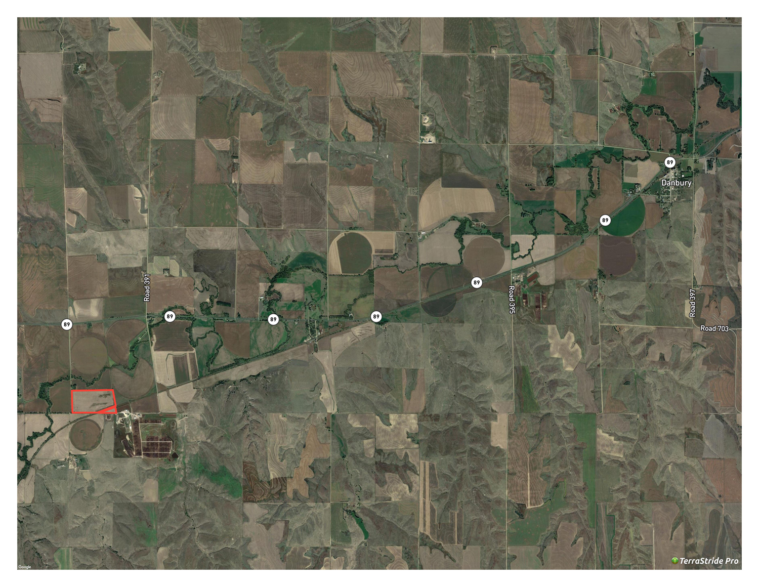 Research Parcel InformationFrom Danbury travel west on Highway 89 for 7 miles to Road 390. Head south 1 mile and the property will be on the northeast side of the intersection of Road 390 and the Nebraska/Kansas border.