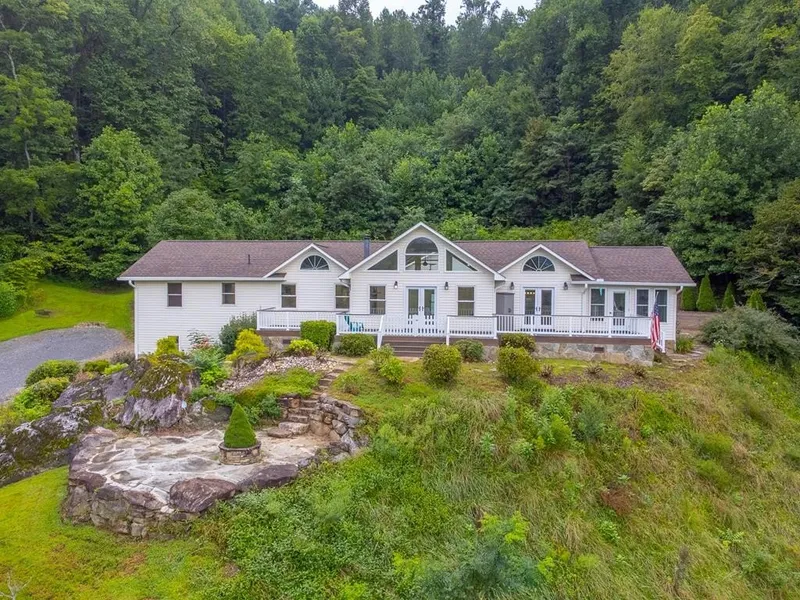 Your next peaceful retreat awaits! This property offers privacy and versatility, nestled on 4+ acres of beautifully landscaped grounds and stunning mountain views! Featuring 3 bedrooms, 3.5 bathrooms, with a primary bedroom ensuite on the main level and a large walk-in closet. The open-concept main floor boasts hardwood and tile flooring, vaulted ceilings, and an electric fireplace. Additional flex spaces that can be utilized to fit your needs. A standout feature, a lower-level in-law suite, ideal for guests seeking their own space. A large bonus room downstairs enhances the home's versatility. Storage options abound with a large interior storage room, an attached two-car garage, and a detached one-car garage offering two bonus spaces, plus a carport shed. Enjoy stunning views from the front deck or relax in the 3-season sunroom. This property is equipped with thoughtful features like a Generac whole-house generator, water filtration system, a whole-house surge protector, and a custom-built A-frame dog house, set on a spacious lot, perfect for pet lovers. Don't miss this unique opportunity to own a piece of tranquility with an interior layout primed for endless possibilities!