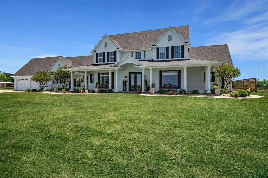 Incredible luxury home on 23 acres only 30 miles from Dallas. This home has the perfect layout, open concept, massive living area, open to large gourmet kitchen featuring granite, large island, eat-in kitchen,with large breakfast bar, stainless appliances. Master suite is very spacious with separate dressing areas, separate claw tub and shower, large walk in closets. Upstairs 2 bedrooms with private bath for each. Mother in law quarters downstairs w kitchen, bedroom and private bath,walk in closet and large walk in shower. Mud room with room for 2 freezers plus loads of storage. Over sized garage with work bench and storage. Pergola for entertaining outdoors, workshop with electric.