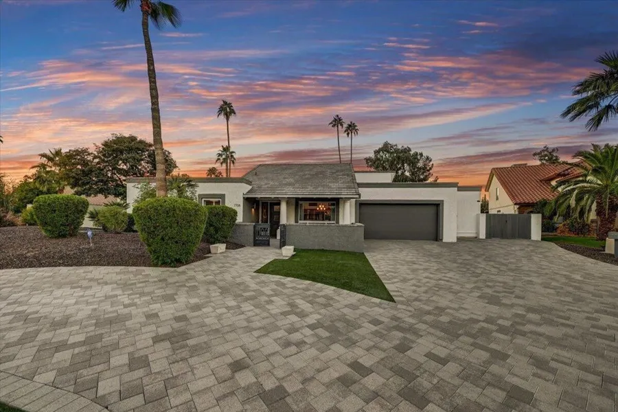 Meticulously updated, this beautiful home sits on a quiet cul-de-sac lot, with a sanctuary back yard, ideally located close to Gainey & McCormick Ranch with great restaurants & amenities and the recreational Green Belt of Scottsdale with miles of walking and bicycle trails to enjoy. The home itself features 5 B, 3.5 BA, a spacious open floor plan, all decorated with the soft contemporary design so much desired today, bright with clean lines, clever use of space and yet warm and welcoming. The fully equipped Chef's kitchen with state-of-the-art GE Café' Series appliances, expansive Italian marble kitchen island, a large country sink, quartz countertops, beautiful cabinetry, accented by a subtle designed tiled wall, opening to the spacious great room with a comfortable seating area,... woodburning fireplace, separate dining space and game room, makes this a perfect home for entertaining family and friends in style. The split floorplan also features two separate spacious primary suites with garden views and ensuite bathrooms, with large glass tiled showers, Italian marble counters on his and hers separate vanities, beautiful mirrors, one also with modern soaking tub and a vast walk- in closet. The 3 additional bedrooms add versatility to the home depending on preference as could be used as office, media- or wellness rooms. The entry courtyard is privately gated, there are several front parking spaces and a large two car garage with epoxy flooring and built in cabinetry, with added storage space in the back. This exceptional property has a very private professionally designed back yard, a large, covered patio with view of the inviting heated pool, lush green low maintenance landscaping, contrasted by beautiful light travertine pavers, a separate solid built ramada enclosing a full outdoor wet bar, gas fireplace, and several cozy seating areas makes this home ideal for good fun or tranquil relaxation. Arizona living at its best. Truly quite special.