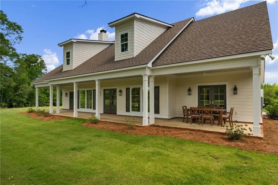 Welcome to this stunning custom-built home offering the perfect blend of luxury living and country charm. Situated on over 50 acres of pasture and mixed hardwoods. Paddocks are enclosed with 4-board fencing and include multiple run-in sheds-ideal for horse lovers and those seeking wide open spaces. Inside, you'll find 3 spacious bedrooms, 3 full bathrooms, and a half bath, all thoughtfully designed with high-end finishes. The chef's kitchen is a culinary dream, featuring premium appliances, custom cabinetry, and a large island that seamlessly flows into the open family room, perfect for entertaining or relaxing by the fire. The primary suite is a true retreat with fireplace French doors and automatic window shades as well as a spa-like bathroom, including a soaking tub, walk-in shower, and dual vanities. Hardwood floors flow throughout the home, adding warmth and timeless appeal. Enjoy serene mornings and sunset evenings on the expansive wrap-around porch, taking in views of the picturesque landscape and grazing horses. Whether you're an avid equestrian, hobby farmer, or simply looking for a peaceful getaway, this one-of-a-kind property delivers the space, style, and serenity you've been dreaming of. Only minutes to shopping and JR Allen Parkway