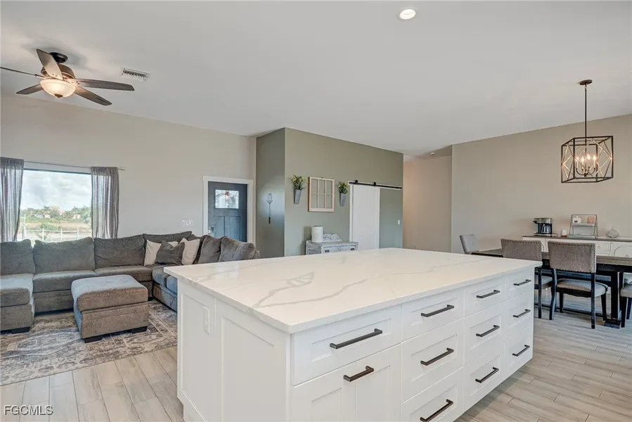 Discover this beautiful 1.25-acre property in a quiet area of LaBelle, featuring a spacious 4-bedroom, 2-bathroom home with an inviting open floor plan. The large kitchen is perfect for entertaining, complete with a generous island and plenty of counter space and accented by two charming barn doors that enhance the home's country feel. Ceramic wood-plank tile flooring runs throughout, adding both style and durability. The primary suite offers a double-sink vanity and a walk-in shower. Practical updates include a roof and A/C unit that are only 6 years old. Outside, enjoy a fully fenced property with a yard irrigation system, a 1-car attached garage, a 30x40 detached 2-car garage, and a 30x30 carport-ideal for vehicles, storage, or hobbies. With no HOA, you'll have the freedom to truly enjoy your space. This property blends comfort, functionality, and peaceful living-don't miss the chance to make it yours!