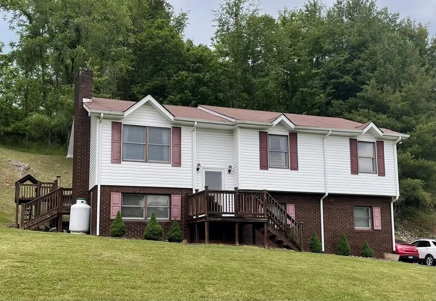 Built in 74 this home offers spacious rooms. Three large bedrooms and 1 BA, living room, dining area and kitchen on the upper level. Vaulted ceilings in the kitchen, living & dining areas give a bright airy feel to the space with a different look from the typical split foyer home. The lower level has a large den with brick fireplace (propane) large bath and a roomy 2 car garage. Deck on the back and a large paved parking area. Convenient to both US Highway 19 & 460. Back deck with access from the dining room has an attached playground. Garage has plenty of room for parking 2 cars with additional parking to the side of the house for an RV or 3rd vehicle.
