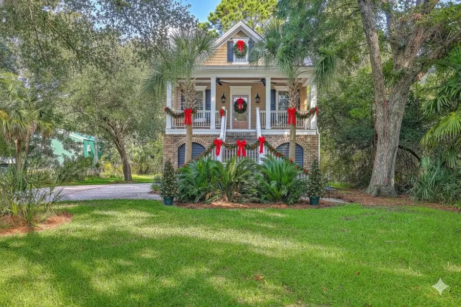 Edisto Beach Retreat -- where Lowcountry charm meets coastal escape. Nestled beneath live oaks on 1.06 acres, this elevated custom home offers marsh-to-ocean views and private dock access just strokes away from a secluded beach. With a built-in climbing wall, room to store beach items and a nice rinse off shower, the huge garage adds convenience and fun to any beach trip! The vaulted living room, open kitchen, and full-length porches create the perfect flow for entertaining or relaxing. Offered fully furnished, with hardwood floors, upgraded lighting, and a spa-inspired bath, this turnkey home is ideal for a weekend getaway, local retreat, or full-time island living. The outdoor setup is designed for both relaxation and recreation. A private dock on the tidal creek invites you to kayak, fish, collect shells, or watch dolphins right from your backyard. Mature oaks frame the large lot, leaving room to expand, perhaps a pool or outdoor entertainment area. Recent upgrades include an Ipe deck, refreshed outdoor shower, and new dock boards, plus fiber internet and keyless entry for modern convenience. Just a short bike ride to George & Pink's and other local favorites, this location offers the perfect balance of peaceful seclusion and easy island access.