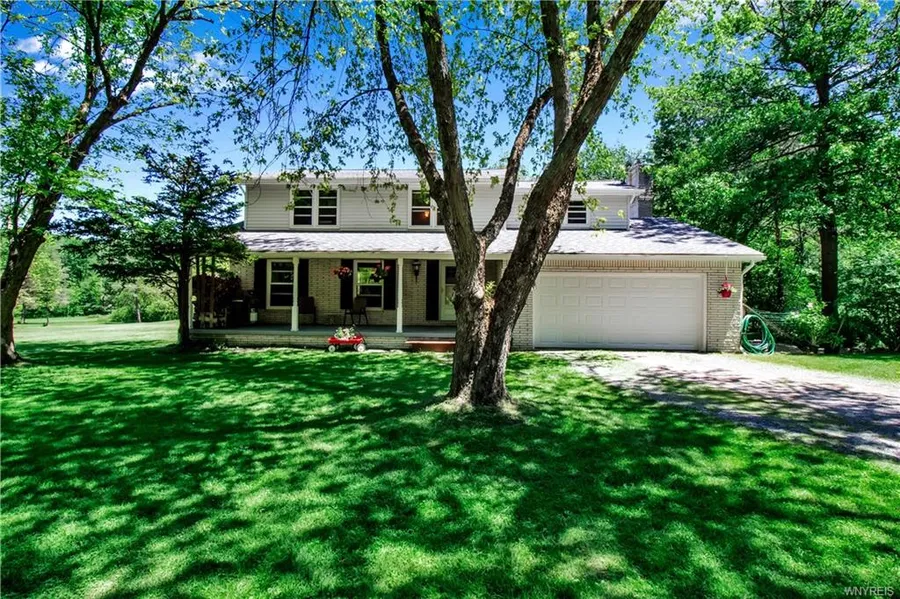 Beautiful home with lovely curb appeal on 12.3 acres of land in West Falls! Quiet, peaceful & private land is long and deep with walking/hiking trails & lawn area. Updates incl: Full tear off roof & gutters, well lines and pump (2014), Boiler and HWT (2015), Upstairs/downstairs windows (2016), Front doors, garage fire door & slider (2017), Outlets rewired, new electrical panel, generator hook up, LR carpet (2018), Well cleaned, pumps cleaned, septic serviced/pumped (2019), New vinyl plank flooring throughout downstairs (2020). Lots of storage throughout. Pellet & wood stoves w/wood on porch staying with house. Close to Kissing Bridge and East Aurora Village. Come on in and make his home your own!