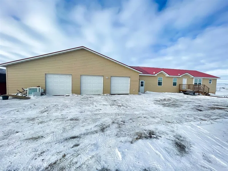 Welcome home to this 5.78-acre property overlooking a beautiful pond and rolling hills located just five miles NW of Stanley, ND. This property offers potential to grow and build on. When you drive in, you will find a triple stall garage attached for convenience and all those extra projects. Between the garage and home is a 12'x28' breezeway (includes upper level storage) for entertaining or additional storage. As you walk in from the breezeway, you will find the laundry room with a coat closet and first two bedrooms. The kitchen offers amazing views, a kitchen island with storage, and plenty of cabinetry throughout. You will find the dining area off of the kitchen with sliding glass doors off of the deck with those same amazing views. The living area is off of the dining room with a coat closet and access to the front door. Off of the living area you will find the master bedroom with a walk-in closet and large master bathroom that includes a soaker tub, separate shower, and plenty of storage. This property's water source is a well that was drilled in 2011 to a depth of 135. The garage was built in 2017 and metal roof put on in 2021, siding was replaced in 2019 with LP Smart wood siding. The new hot water heater was installed this year. The garage was completed with electrical ran, insulation, and metal walls and ceiling installed. The garage floor is dirt/gravel flooring. The skirting has been updated to a 2"x4" framed wood skirting. The property is almost fully fenced in with 30" sheep fence. The two sheds do not convey with the property. The hot tub could stay (needs new pump). Fiber optics have been ran to this property. Call today for a showing. Dont wait on this one!