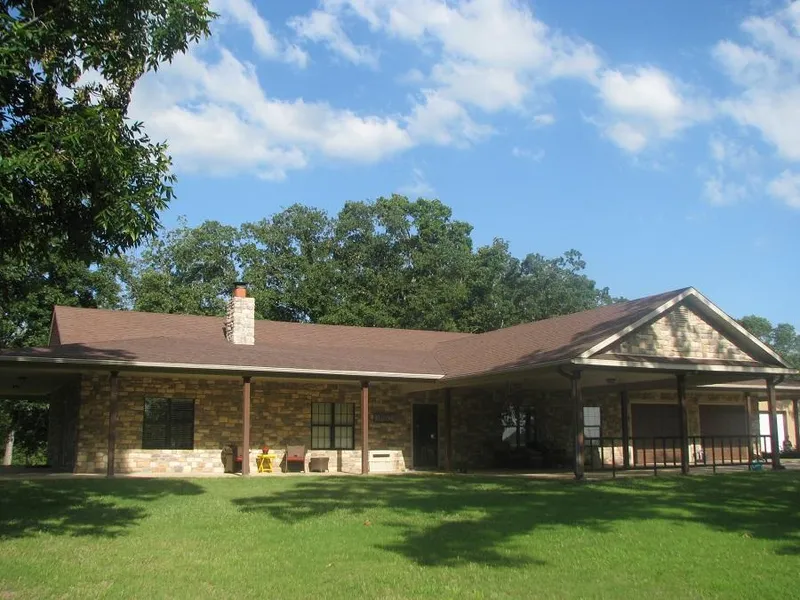 The land is 45-50% wooded with remaining in native pasture grass. A live spring begins with a waterfall on the property producing a year round stream a short walk from the house. An old cemetary in the NE corner and a utility line easement transverses the back of the property and not visible from the house. Excellent hunting!