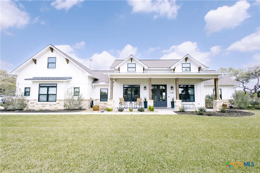 Welcome to 78 Battle Drive! This award-winning custom built home is now available, located in the Sol Park Estates in Fannin, Texas. Sitting on 2.34 acres, this beautifully designed home offers 2,567 square feet of exceptional craftsmanship and high-end finishes. It features 4 bedrooms, 3.5 bathrooms, and a striking exterior with custom-cut limestone and cedar beams. The living area offers a fireplace, built-in bookshelves, and an open concept. The kitchen is equipped with premium appliances, a butlers pantry, and elegant black soapstone and Quartz Onyx white countertops. The bathrooms showcase marble and granite finishes. Two of the bedrooms are connected with a jack and jill bathroom as well. This home also features an upstairs bedroom with a full bathroom, perfect for an additional suite or office! The backyard includes a back patio, outdoor kitchen, and a fenced in area that provides the perfect space for entertaining or relaxing. Schedule a showing today to experience all that this stunning home has to offer!