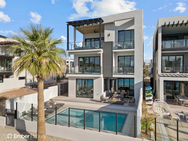 Rare premium property directly on the 2.5-acre lagoon. Brand-new, professionally designed home sleeps up to 22 and features a private heated pool/hot tub, gourmet kitchen, spacious great room, and multiple en suite bedrooms. High ceilings, inviting courtyards, lagoon-view decks, and outdoor lounges with fire pits create the perfect indoor-outdoor retreat. Enjoy full access to Desert Color amenities, including the lagoon and beaches, year-round heated pool and spa, poolside food/bar service, sundeck, trails, parks, and pickleball courts. Close to dining, shopping, golf, SGU Airport, and area attractions including Tuacahn and Zion National Park.