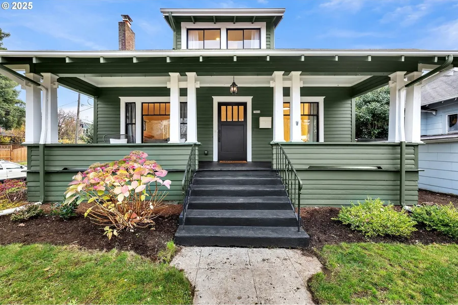 Welcome to this exceptional remodeled Craftsman nestled near the vibrant downtown St. Johns. This home offers privacy, situated on a corner lot with wide streets and ample parking. Featuring 3 bedrooms, 2 full baths, office, 2 living rooms, laundry room, plenty of storage, and an upgraded detached garage with new EV charger. Enjoy beautiful hardwood fir floors throughout and a fully remodeled kitchen with high ceilings, large quartz island, expansive quartz counters, built-in pantry, and gas appliances. The primary ensuite boasts a large, beautifully remodeled bathroom. The finished basement with its own entrance offers incredible flexibility ideal for multi-generational living, a short-term rental, or extra space for a media room, office and more. Basement also features a newer thin layer of self-leveling compound for a smooth level surface. This home has been thoughtfully updated with newer electrical, newer plumbing, newer roof, and a newer water heater. Relax on the spacious front porch or in the newly expanded and fully fenced backyard with a covered deck and garden beds. A perfect blend of timeless character, modern updates where it matters most, and versatile living in a prime location! Fiber optic internet. Don't miss this rare opportunity, schedule your private tour TODAY!
