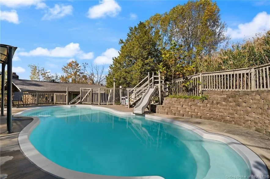 SUCH A GREAT HOME... in the Galena/Greenville/Floyd Central school area! Raised ranch with approx. 3,000 SF, 4 BR 3 BA sitting on 1.3 acres which features a large living room with gas fireplace that is open to a dining area, kitchen with custom cabinetry and breakfast bar, and a lower level family/rec area with a woodburning fireplace with it's own walkout entrance. Sit on the wrap around balcony with a hilltop view that can be accessed from the living room and 2 of the bedrooms, enjoy the hot tub nestled on the back deck just off the master bedroom or soak up the sun by the inground fiberglass, heated pool with slide!! To top it off, there is an oversized 2-car attached garage with 3 storage closets and plenty of space outside with a fenced in area, plus a 25 x20 lean to/shed and a 16 x10 Miller mini barn. Conveniently located, perched above and along Hwy 150 for quick access to I-64, shopping and amenities.