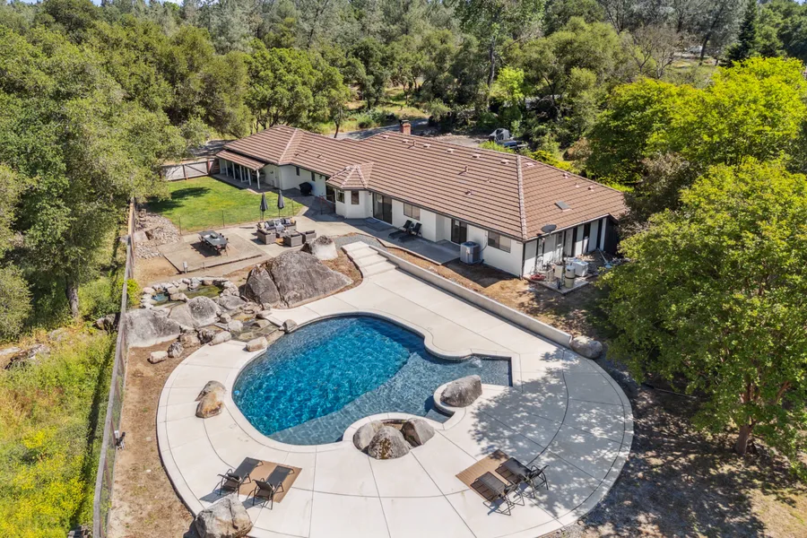 Nestled at the end of a quiet lane in the desirable Hidden Valley community, this freshly updated single story ranch style home offers the perfect blend of comfort, functionality, and outdoor living. Situated on 1.29 usable acres, this 4 bedroom, 3 bathroom home boasts 2,760 square feet of thoughtfully designed living space, ideal for families and those who love to entertain. Step inside to find a freshly painted interior complemented by brand-new flooring throughout. The spacious layout flows effortlessly, offering both cozy living areas and ample space for entertaining. The heart of the home opens to a stunning backyard oasis featuring a new, oversized saltwater pool complete with a waterfall and natural granite outcroppings perfect for warm summer days. Equestrian enthusiasts will appreciate the two-story barn and horse-friendly grounds within the community. While the Generac generator ensures peace of mind year-round. Located in the top-rated Loomis School District, zoned for Del Oro High School, just minutes from shopping, dining, and recreation, this rare Granite Bay gem offers the privacy of country living with the convenience of town amenities. Don't miss the opportunity to own a piece of paradise in one of the area's most sought-after communities.