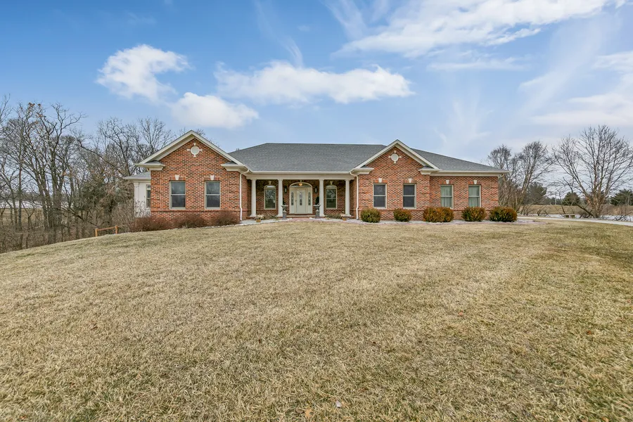 Gorgeous 4 bedroom 3 bathroom Waterloo home nestled on nearly 5 acres of scenic land. As you approach note the beautiful brick exterior and charming covered front porch. Step inside to find the spacious family room featuring hardwood floors & gas fireplace. The well appointed kitchen boasts a center island, 42" maple cherry cabinets, vaulted ceiling, pantry, reverse osmosis kitchen sink & appliances stay with the home. The main floor master bedroom suite features His & Hers walk-in closets, tray ceiling, & attached master bathroom w/ dual vanity & ceramic tile floor. Also on the main level find 2 generously sized bedrooms, full hall bathroom, & amazing sun room w/ heated ceramic tile floor. The partially finished lower level includes a generously sized craft room, family room w/ wet bar & tray ceiling, full bathroom w/ heated floor, & 4th bedroom. Other items of note include the ADT security system, whole home generator, and outdoor living area w/ deck offering lovely pond views.