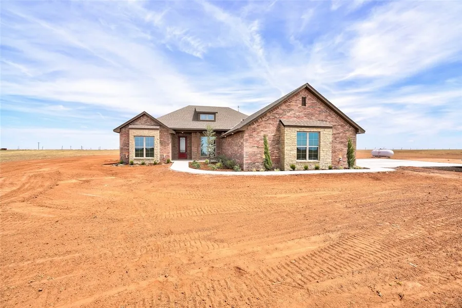 Beautiful **MOVE IN READY** New Home on 2.5 Acres in Piedmont! This home is absolutely gorgeous inside and out, featuring the perfect combo of brick and stone on the outside with a side load garage so the first thing you notice about your house is not the garage! The inside is highlighted by the incredible wood look tile, large windows for the peaceful views and amazing amount of natural light, a cathedral ceiling, and the large open kitchen with beautiful light fixtures, painted cabinets with tons of storage, and gorgeous quartz countertops. Get work done in the privacy of the separate study! Don't need a study but have kids? Use the study as a small movie or game room. End every night or start every morning taking in the peaceful surroundings under your HUGE covered patio. This home literally has EVERYTHING. Make it yours!