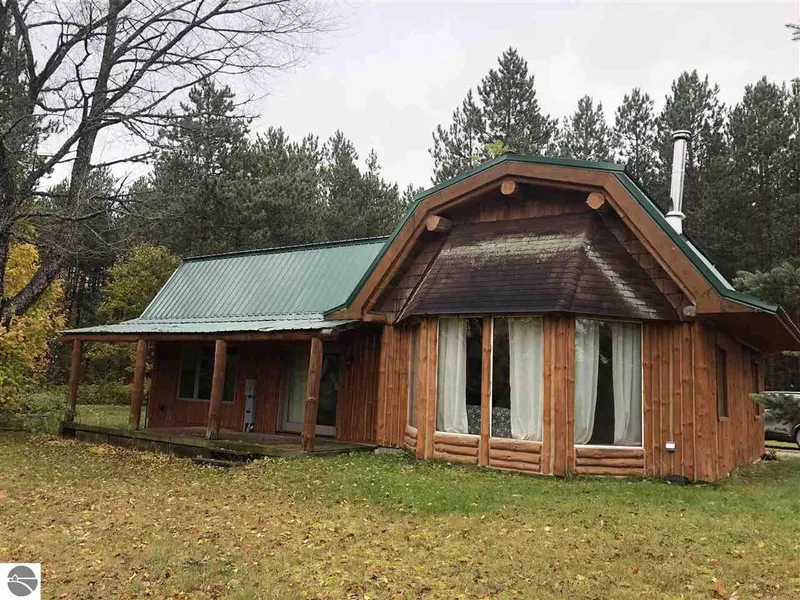 Unique, custom-built log home on super-private 5+ acres. Experience northern MI country living in comfortable style with in-floor radiant heat. All custom designed and built of native wood from the site. The kitchen cabinets came from home-grown ash trees. Unusual, vertical log construction and quaint, north-woods finishes make this home super special. Even the great claw-foot tub in the huge bathroom has historic roots and a story to tell. Enormous master has its own loft, though it's currently not easily accessed, Second bedroom is a loft, affording a unique vista through the unusual architecture. Your five plus acres give you the option of owning horses and State trails for riding as well as thousands of acres of State land are less than one mile away. Or use the trails for snow mobiling or dirt bikes. The choice is all yours. You even have a good start at self sufficiency out here. There are fruit trees on the property ready to provide plenty of apples and an herb garden - as well as summer flowers too. Just add a veggie plot - there's plenty of room - then add a couple of chickens, take advantage of local hunting opportunities, and you may never need to visit a supermarket again! There's lot's of opportunity to fuel the wood-stove from your own land too - and a hook-up for a second one in the living room if you want to keep it cozier than the underfloor heating already keeps it.