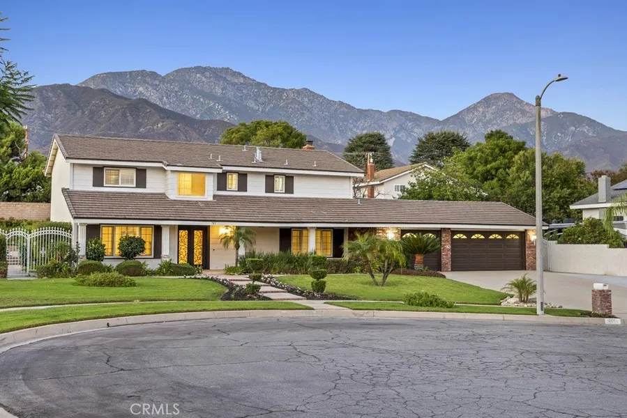 Welcome to this stunning two-story home offering 2,523 square feet of living space on an expansive 16,640 sq. ft. lot. Perfectly situated on a peaceful cul-de-sac, this residence combines modern updates with timeless charm, all while showcasing breathtaking mountain views. The beautifully landscaped grounds feature a large in-ground heated pool and spa, ideal for relaxing or entertaining. The spacious backyard is enhanced with newer concrete, providing the perfect setting for gatherings, plus ample RV parking for added convenience. A finished 3-car garage with epoxy flooring offers both function and style. Inside, the remodeled kitchen shines with quartz countertops, soft-close white cabinetry, and a bright, airy atmosphere that flows into the casual breakfast nook. The home offers both a formal living room and dining room, each generously sized for entertaining. The family room with a cozy fireplace provides the perfect place to unwind. All bedrooms are upstairs, offering privacy and comfort, and each is spacious with plenty of natural light. The primary suite is a true retreat, featuring a spacious, updated bathroom with double sinks, a large step-in shower, and an overhead shower faucet for a spa-like experience. Additional highlights include the updated staircase with newer railing, stylish shutters throughout, and a 3-year-old water heater. This home is the perfect blend of comfort, style, and function—inside and out. Don't miss out on the opportunity to own a beautiful turnkey home. Check it out now Take virtual tour right now: