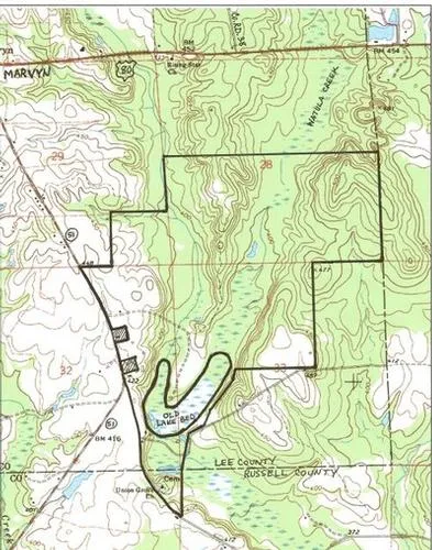 Full Description: Beautiful cropland and pastureland with some timber, conveniently located on Hwy. 51 in south Lee County. 1.2 miles of paved road frontage, old 100 acre lake site, beautiful hardwood bottoms on Big and Little Watula Creek, wildlife plots and abundant wildlife.